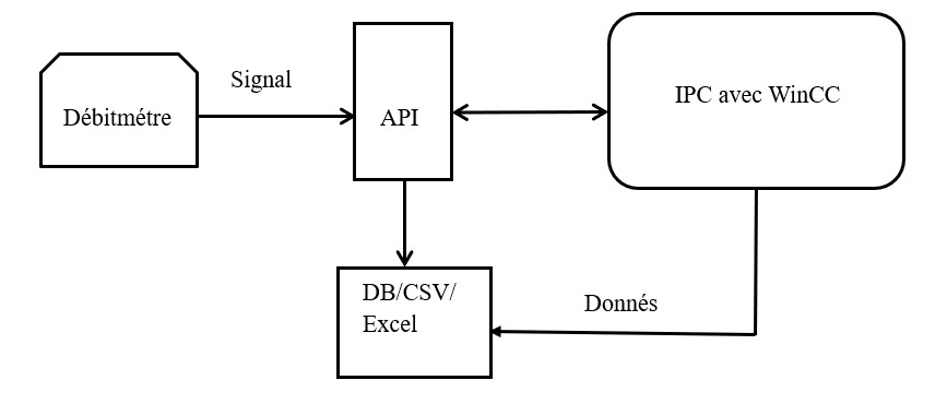 Les capteurs mesurent en continu le débit instantané et le volume totalisé de CO2. Ces valeurs sont lues par l’automate S7-300 via les entrées analogiques (4–20 mA).